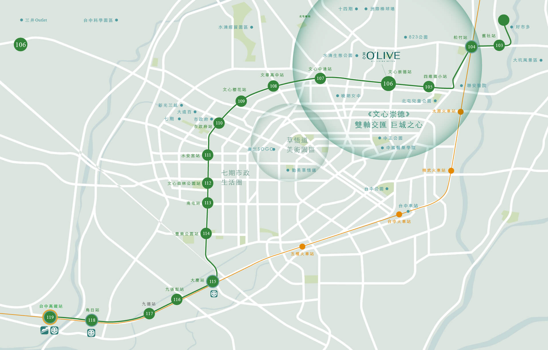 中捷綠線-大台中最重要的黃金中軸,【文心O'LIVE】以200米的距離與您共享捷運紀元的美好未來!